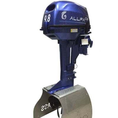Лодочный мотор ALLFA CG T9,8 – двухтактный, двухцилиндровый мотор. Работает на топливной смеси бензина и масла (50:1). Аналог модели: Тohatsu. Мотор оснащен внешним топливным баком (12л.) и топливным шлангом, чекой безопасности, обязательно ремкомплектом. Мотор предназначен в основном, для транцевых лодок среднего размера. Мотор позволяет идти на транцевых надувных лодках средних размеров в глиссирующем режиме.