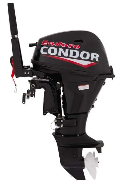 Этой надписью компания Yamaha называет моторы с повышенным ресурсом эксплуатации, для работы в тяжелых условиях, неприхотливые, отличающиеся своей надежностью, увеличенным объемом двигателя. Так как наша новая модель имеет больший объем (362 куб. см против 323 куб.см у двигателей-одноклассников), мы тоже решили дать этой модели название ENDURO. Мы все знаем, что увеличенный объем двигателя даст меньший износ деталей, а также приведет к улучшенной тяге при перевозке тяжелых грузов. Так же наш CONDOR CNF9.9FHS ENDURO оснащен всеми датчиками, которые позволят проинформировать шкипера в случае неисправности двигателя. Данная модель отличается простотой конструкции (подача топлива - карбюратор), экономичностью (на максимальных оборотах расход двигателя 5 литров в час).