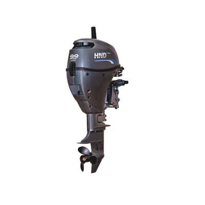 Представляем легкий и компактный 4-тактный подвесной лодочный мотор HND OB9.9 FEHBS номинальной мощности 9,9 лошадиных сил и рабочим объемом 212 см³. Расшифровка МТО: F - 4-тактный двигатель; E - электростартер; H - румпельное управление; B - литиевый аккумулятор в комплекте; S - короткий дейдвуд