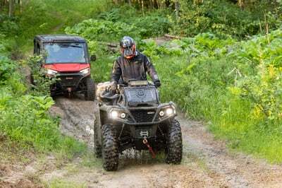Мощный квадроцикл для мокрых маршрутов: грязи, бродов, топкой мягкой почвы. За счет длинной колесной базы стабильно и плавно управляется, устойчив на поворотах. Выпущен специально для российского рынка. Получил камуфляжную расцветку и кнопку для маскировки: она выключит весь свет на работающем квадроцикле. Подвеску можно полностью отрегулировать под дорожные условия и стиль езды. Все амортизаторы — YIT Type 4 (такие же устанавливались на квадроциклы BRP Can-Am Outlander). У них есть настройки по предварительному натяжению, отбою и сжатию.
