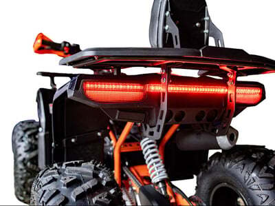 Стильный и мощный квадроцикл GLADIATOR G125 LUX- Инженеры установили в квадроцикл бензиновый карбюраторный OHV четырехтактный одноцилиндровый двигатель воздушного охлаждения объемом 125 см³. Используется усиленная цепь 428 и трансмиссия D-N-R (вариатор). Для запуска применяется электростартер (АКБ 12v/9Ah) или трос (ручной пуск). Максимальная скорость составляет 60 км/ч, а максимальный вес водителя не должен превышать 100 кг (могут кататься взрослые и дети старше 10 лет). Колесные диски металлические штампованные, фары светодиодные. Передняя подвеска у квадроцикла