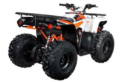Модель оснащается проверенным экономичным 4-тактным двигателем воздушного охлаждения рабочим объемом 120 см3 и полуавтоматической трансмиссией с возможностью переключения в реверсный режим хода. Возможности силовой установки позволяют развивать максимальную мощность в почти 8 лошадиных сил. Квадроцикл собран на прочной раме из стальных труб; подвеска представлена нерегулируемыми амортизаторами, обеспечивающими комфорт передвижения в самых разных условиях. Колеса собраны на стальных 8-дюймовых дисках; за безопасность отвечает производительная дисковая гидравлика. Дополнительный комфорт использования обеспечивают комплект светового оборудования, передний и задний багажники.