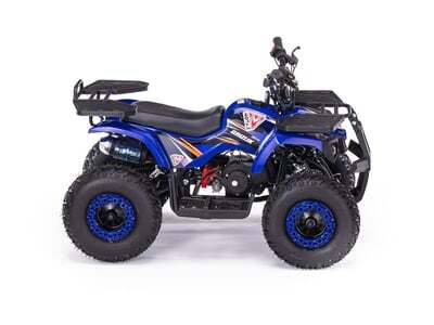 ATV MOTAX GRIZLIK Х16 ES (с электростартером) — детский квадроцикл в классическом утилитарном дизайне. Расшифровка обозначений: ES - электрический стартер, BW - увеличенные колёса. Этот квадроцикл оборудован 6-дюймовыми увеличенными колёсами и шинами с внедорожным протектором. Отлично подойдёт для детей от 3 до 8 лет.
