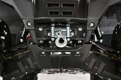 Квадроцикл оборудован системой дистанционного управления, дисковыми гидравлическими тормозами, зеркалами заднего вида и световым оборудованием. В стандартной комплектации предусмотрены расширители колесных арок, защита днища и металлический бампер с декоративной накладкой, а трехступенчатая коробка передач позволяет выбирать режим езды в зависимости от условий и опыта водителя.