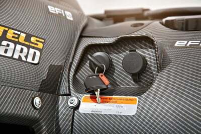Квадроцикл обладает компактными размерами. Длина 224 см, ширина 156 см и высота 144 см позволяют хранить технику в гараже рядом с основным транспортом, так как квадрик не занимает много места. Кроме того, обладает весом 372 кг. Это влияет на скорость и на маневренность квадрика, в чем вы сможете убедиться в болотистой и бездорожной местности.