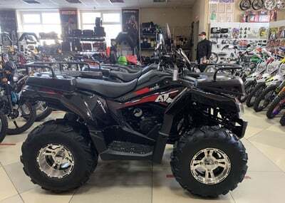 Квадроцикл оснащен системой дистанционного управления, дисковыми тормозами, зеркалами заднего вида и световым оборудованием. В стандартной комплектации квадроцикла установлены расширители колесных арок, защита днища, металлический бампер с декоративной накладкой. А также в комплекте с квадроциклов удлиненное сиденье и большие широкие подножки, позволяющие водителю удобно разместиться на транспорте.