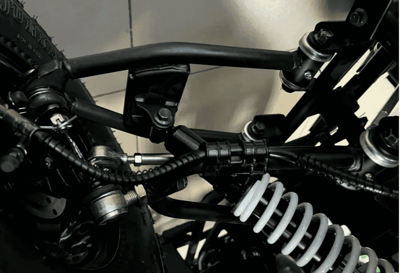 Квадроцикл оснащен гидравлическими тормозами, обеспечивающими надежное торможение на различных поверхностях. Это позволяет райдерам чувствовать себя безопасно благодаря легкому управлению и хорошо реагирующему торможению.