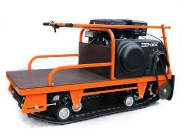 Буксировщик оснащен 4-х тактным двигателем Lifan мощностью 20 л. с. и объемом 460 кубов, достигающий скорость до 25 км/ч. Это позволяет быстро перевозить груз до 50 кг на специальной багажной площадке мотобуксировщика. Также есть возможность установить сани к мотобуксу, что позволит перевозить дополнительно до 120 кг.