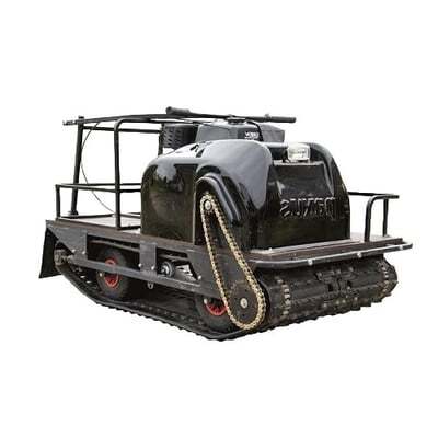 Этот мотобукс оснащен 4-х тактным двигателем мощностью 9 л. с., что позволяет достигать скорости до 40 км/ч. Это позволяет быстро перевозить груз весом до 240 кг. Объем двигателя составляет 390 кубов. Кроме того, мотовездеход оснащен топливным баком на 5,5 литров. Расходуя до 2 литров бензина в час, мотобуксировщик дает возможность беспрерывной до 3 часов работы.