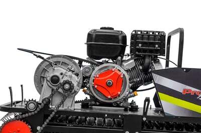 Конструкция мотобуксировщика Sharmax SE600RR 1450 HP23 Enduro устроена таким образом, что позволяет без особого труда устанавливать к ней и использовать любые шасси, предназначенные для различных условий эксплуатации. Универсальные посадочные отверстия основы и кузова мотобуксировщика Sharmax HP23 могут использоваться на склизовой, катковой и даже колёсной подвеске.