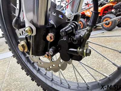 Спортивные колеса собраны из высокопрочных стальных ободов 14/17 дюймов и износостойких шин с агрессивным внедорожным протектором. Питбайк устойчив на всех типах дорожных покрытий и бездорожье.