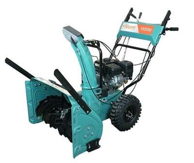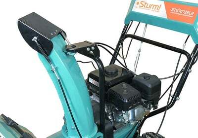 Бензиновый снегоуборщик Sturm! STG7672ELR — это самоходная двухступенчатая снегоуборочная машина, оснащенная зимним вариантом надежного четырехтактного бензинового двигателя модели 170F. Система управления двигателем обеспечивает его работу в оптимальном диапазоне максимального крутящего момента, что даёт хорошую энерговооружённость для выполнения тяжёлых работ. «Сухая» гильза цилиндра двигателя из высокопрочного материала обеспечивает долговечность цилиндропоршневой группы. Зазубренный шнек первой ступени успешно измельчает слежавшийся снег и может справиться даже с настом толщиной до 2 см. Высокооборотистая вторая ступень снегоуборочного агрегата отбрасывает снег на расстояние до 12 м. Широкие колеса с развитым анти-снежным протектором позволяют уверенно двигаться по рыхлому снегу.